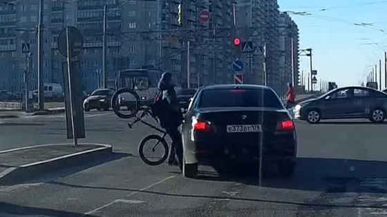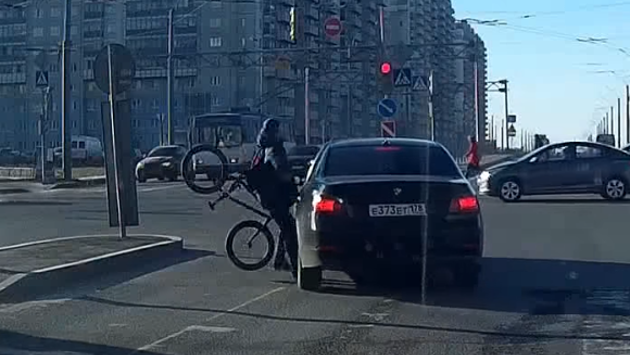 Торопливый велосипедист невольно "наказал" нарушителя ПДД в Санкт-Петербурге