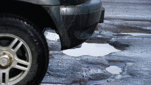Осторожно! Машины проваливаются в яму возле Аламединского рынка
