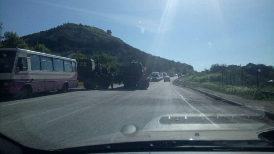 Под Севастополем в селе Верхнесадовое произошло столкновение военного тягача с пассажирским автобусом. Как сообщает Утро.ru, момент аварии зафиксировал видеорегистратор автомобиля, который ехал сзади тягача. Перед водителями тягача и легкового автомобиля на близком расстоянии пробежали пешеходы, из-за чего оба водителя резко затормозили, но тягачу, груженному тяжелой военной техникой, не хватило расстояния для торможения. Чтобы не врезаться в легковушку, водитель тягача резко свернул вправо и врезался в автобус, стоящий на остановке. Сообщается, что в результате ДТП никто не пострадал, так как удар был слабым. Ранее сообщалось, что в Сочи автобус протаранил пальму.
