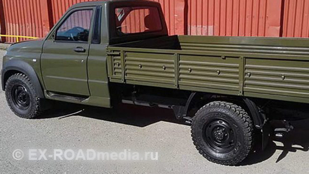 В Сеть выложили фото армейской версии новой модели компании «УАЗ». Речь идет об автомобиле под названием «Профи», который по своей сути является собратом «Карго», но имеет повышенные показатели грузоподъемности. Характерная окраска кузова грузового автомобиля UAZ Profi на опубликованном фото говорит о том, что он предназначен для военных нужд. В настоящее время данный автомобиль проходит испытания в Вооруженных Силах РФ. О том факте, что речь идет действительно о модели УАЗ Профи, говорят характерные детали в дизайне автомобиля – как пример ступицы на шести болтах и характерные задние рессоры. Колеса прототипа обуты в покрышки фирмы Maxxis, которые раньше UAZ ставил исключительно на автомобили серии Патриот для компании «ГАЗпром». Напомним, что гражданская версия модели UAZ Profi должна поступить в продажу в России уже совсем скоро – к началу июня этого года. Отличается новинка от семейства Карго увеличенной длиной и колесной базой, улучшенной грузоподъемностью (до полутора тонн). Грузовик уже называют одним из главных конкурентов «Газели».