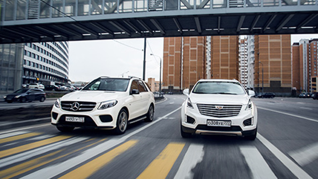 Свист и одуванчики. Архитектура и страусы. Додекаэдр и топинамбур. Глядя на состав этого теста, вы наверняка успели подумать, что вышеназванные пары мы — наркоманы из «Мотора» — тоже сочли бы вполне сопоставимыми и пригодными к сравнению. Вас можно понять! Ибо какая, к черту, дуэль XT5 против GLE, если эти машины относятся к разным классам, стоят совсем разных денег, а «Мерседес» вдобавок носит шильдик AMG? Но погодите пока звонить в неотложку. Да, не отрицаем, сравнение этих двух кроссоверов — дело странное. Но не совсем бессмысленное. Для начала я, с вашего позволения, процитирую последний абзац из заметки Миши Цымбала о премьерном тесте XT5. Во-первых, так проще всего задать контекст происходящего. А во-вторых, начальству вообще нравится, когда его цитируют. Итак: «Для XT5 Cadillac выбрал интересное позиционирование — по цене и размерам он попадает точно посредине между средне- и полноразмерными европейскими кроссоверами: между Mercedes-Benz GLC и GLE и между BMW X3 и X5. Произведя нехитрые вычисления, можно предположить, что в России полноприводный XT5 c 3,6-литровым V6 и в хорошем оснащении должен стоить немногим дороже трех миллионов рублей. Попали?». И ведь правда почти попали: за «среднюю» комплектацию XT5 Premium дилеры хотят 3,3 миллиона рублей, а наша версия Platinum — наирасполнейший фарш в опциональном перламутрововом цвете — обойдется в 3 790 000 рублей. О том, что дают американцы за эти деньги, поговорим чуть ниже, а пока давайте заглянем на сайт Mercedes-Benz и ох… Охнем от удивления. Самый-самый дешевый GLE (с чахлой дизельной «четверкой» и салоном из кожзама) обойдется в четыре миллиона. Ровно. «Ну так и правильно, это же машина другого класса», — скажете вы и будете не совсем правы. Не сочтите за наглость, но можно попросить вас об одной странной штуке? Прямо сейчас выдерните пожалуйста, из своего (или соседского) носа один волос. Скорее всего, он окажется не длиннее сантиметра (в противном случае рекомендуем показаться специалисту). Так вот, GLE превосходит XT5 по габаритной длине всего на половину этого волоска — если точнее, то на 4 миллиметра. В ширину разница составляет три с небольшим волоска, по колесной базе — почти шесть. Иными словами, Cadillac — почти такой же большой, как и Mercedes, но стоит заметно дешевле. А это уже хорошо знакомая нам и вам история. Конечно, для корректности нам стоило бы раздобыть тот самый «голый» GLE 250d или хотя бы пригласить GLE 400 с 333-сильным V6, чтобы оказаться на одном мощностном уровне с 314-сильным «Кадиллаком». Увы, в пресс-парке нашлась только версия AMG GLE 43, которая мало того, что мощнее (367 сил) и быстрее (5,7 секунды 0-100 против 7,1 у американца), так еще и тянет со всеми дополнительными плюшками на шесть миллионов с хвостиком. Нет, с хвостом. С огромным таким хвостищем. Но третий пункт в трудовом договоре «Мотора» гласит буквально следующее: «Если тебе предлагают на тест машину AMG, ты не имеешь права отказаться. Штраф — месяц езды на Lifan Smily». Поэтому да, мы взяли на этот тест XT5 и GLE 43. Давайте сразу закроем вопрос динамики и управляемости, потому что здесь Mercedes устраивает конкуренту такое а-та-та, что его демонстрацию впору снабжать лычкой «18+». В принципе, мы и раньше знали, что «промежуточная» линейка AMG с индексом 43 довольно крута. Но именно в случае GLE — по сути, престарелого ML с другим именем — это осознание накрывает с особой силой. Потому что у нас тут бу