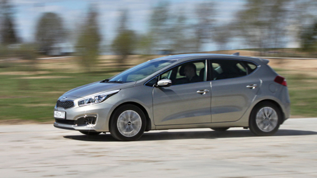 C самого дебюта в России наиболее популярным мотором для второго поколения Сида был 1,6-литровый атмосферник MPI мощностью 130 л.с., на который приходится более 90% продаж. Вместе с недавним рестайлингом европейский Kia cee`d получил 100-сильный литровый мотор с турбонаддувом, но нам турбина только снится. К нам же с большим опозданием попал лишь новый атмосферник GDI. По сравнению с предшественником его объем не изменился, а главные изменения – прямой впрыск вместо распределенного и фазовращатели на обоих валах. Кроме того, новый мотор отличается более эффективной системой охлаждения и иной формой поршней, позволяющей производить впрыск смеси точно в центр цилиндра.  Куда более важным новшеством стала новая трансмиссия 6DCT, с который безальтернативно предлагается мотор GDI. Конструктивно это преселективный «робот» с двумя сухими сцеплениями аналогичный известной трансмиссии DSG от Volkswagen. Интересно, что в Европе cee`d с этим мотором и трансмиссией продается еще с 2012, а сейчас на смену шестиступенчатой там пришел «робот» следующей генерации, где скоростей уже семь. В России, напротив, параллельно с двигателем GDI и коробкой DCT, продается обновленный Сид со прежней силовой установкой в составе 130-сильного мотора и традиционного шестиступенчатого «автомата». Так есть ли смысл менять шило на мыло и отказываться от зарекомендовавшего себя надежным тандема в пользу новой трансмиссии?  На «бумаге», у Сида с новым мотором лишь на семь десятых секунды сократилось время разгона до ста километров в час и на 6% уменьшился расход топлива. Ясное дело, что на практике почувствовать такую разницу невозможно. Разгоняется хэтчбек по-прежнему неспешно. Тугая напольная педаль газа порядком задемпфирована, а это значит, что даже на изрядно продавленный акселератор машина реагирует лениво. От 135-ти сил под капотом ждешь чего-то большего, но на деле Kia cee`d едва успевает за конкурентами с меньшим числом лошадиных сил под капотом. Намек на динамику появляется только на верхах, когда стрелка тахометра стремится к 5000 об/мин.  Главное неудобство – разгон с ходу, когда трансмиссия вынуждена перескакивать на две или даже три ступени вниз. DCT работает неспешно и подчеркнуто мягко, переключается с заметными паузами, из-за чего по поведению ее легко перепутать с обычным «автоматом». Но в пробках угадать природу этой трансмиссии можно без труда. Виной тому легкие подергивания на совсем малом ходу, свойственные роботизированным трансмиссиям с двумя сцеплениями. Получается, что инженеры нарочно замаскировали поведение трансмиссии с двумя сцеплениями под обычную АКПП нивелировав преимущество первой в скорострельности. Но зачем?  Хорошо, что с конструкцией подвесок никаких откровений. Спереди у Сида обычный McPherson, сзади – традиционная многорычажка. Еще с момента дебюта второе поколение Kia cee`d прослыло комфортным автомобилем. Не изменилась ситуация и после рестайлинга, в ходе которого ради улучшения шумоизоляции изменили опоры задних амортизаторов, а передний стабилизатор сделали полым.  Шасси Сида по-прежнему тяготеет к комфорту. Заметно, что одной из главных поставленных задач перед инженерами, занимающимися доводкой подвески, стала плавность хода. Kia здорово стелет по ровно прямой, практически незаметно справляется с мелкими неровностями и не пасует при встрече с ямкам