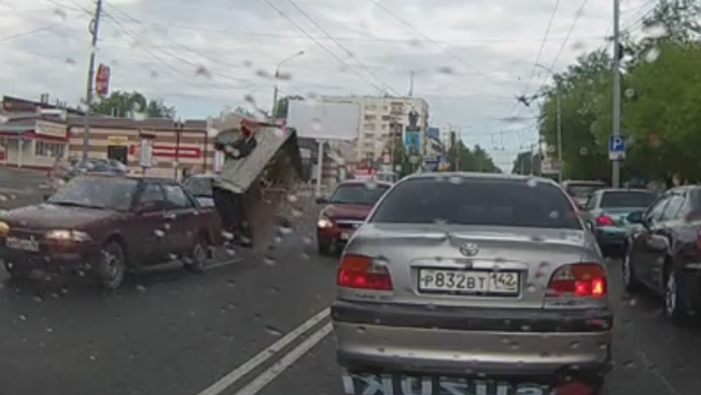 Автомобильный регистратор запечатлел необычную аварию с участием нескольких легковушек и прицепа, буксируемого одной из них. Телеканал «360» публикует видео инцидента, произошедшего 29 мая на проспекте Фрунзе в Томске. Можно предположить, что наличие прицепа за авто, после проезда которого водитель легковушки попытался совершить поворот, стало для него сюрпризом. После столкновения с машиной «повозка» перевернулась и влетела еще в одно транспортное средство. В результате ДТП никто не пострадал.