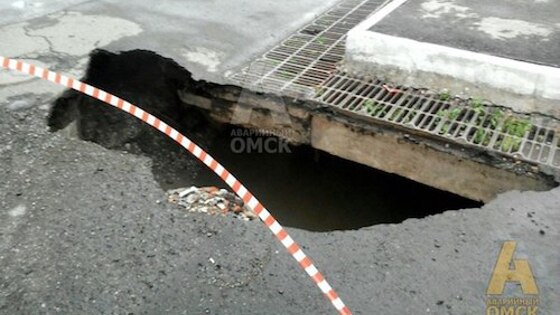 На Красном Пути в Омске провалился асфальт