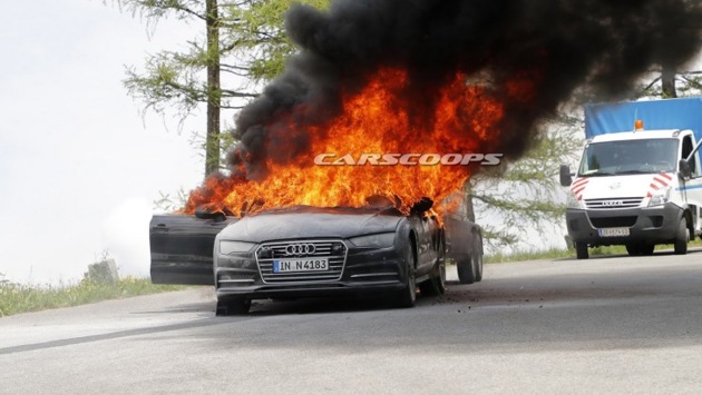 Инженеры немецкого бренда Audi тестировали прототип новой/обновлённой модели A7 в австрийских Альпах. Автомобиль внезапно загорелся, свидетелем чего стали шпионы популярного издания Carscoops. Как отметили папарацци, в течение 15 – 20 минут, пока не подоспела пожарная служба, машина была полностью уничтожена огнём. Каких-либо официальных данных о причинах возгорания автомобиля в настоящий момент нет. Скорее всего, в электронике транспортного средства произошёл какой-то серьёзный сбой, что было вызвано буксировкой прицепа по тяжелым перевалам австрийских Альп. Как видно на фото, огонь возник в моторном отсеке и начал вырываться через капот и лобовое стекло тестового прототипа Audi A7. Инженеры, которые испытывали автомобиль, попытались потушить огонь обычными огнетушителями, но это не дало положительного результата. Как отмечает портал, в течение 15-20 минут, пока не приехала пожарная служба, автомобиль был полностью уничтожен огнём. К счастью, никто не пострадал. Также работники издания отмечают, что подобный инцидент является наглядным напоминанием о важности тестирования новой разработки, поскольку он позволяет автопроизводителям точно определить возможные неисправности своих новых моделей, прежде чем они выведут их на рынок. Новая модель Audi A7 2019 модельного года будет основана на платформе MLB Evo, которая уже успешно используется на внедорожнике Q7. Как сообщается, дизайн будет в значительной степени вдохновлен концепцией Audi Prologue, но нам придется подождать до конца года, по крайней мере, чтобы увидеть, правда ли это.