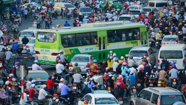 Пешеходы в шоке: в Сайгоне автобус проехал по тротуару, чтобы избежать пробок