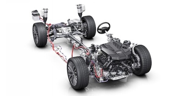 Компания Audi опубликовала фото шасси нового поколения модели A8, параллельно рассказав о технической составляющей платформы этой модели. Автомобиль в серийной версии будет оснащен «мягкой» гибридной силовой установкой Mild Hybrid, а также 48-вольтовой бортовой электрической сетью. Из новшеств флагманского седана нового поколения от Ауди стоит отметить появление в его оснащении системы рекуперации кинетической энергии (KERS), которая даст автомобилю дополнительную энергию при разгонах. Напомним, что официальная презентация нового поколения Audi A8 состоится 11 июля на специальном мероприятии в Барселоне (Испания).