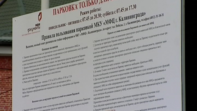 Сегодня в центре Калининграда открылась бесплатная парковка для клиентов многофункционального центра. Находится она неподалеку от администрации города и рассчитана на 56 мест. На обновление автостоянки было потрачено около 3,5 миллионов рублей. На эти средства было закуплено оборудование, а также произведена частичная замена покрытия и нанесение разметки. Желающим просто оставить свое авто на паркинге, не заходя по делам в МФЦ, придётся раскошелиться. Здесь действует специальный тариф, он в два раза дороже, чем на соседних парковках. Оплатить его можно на месте в паркомате при помощи наличных или банковской карты. Работать стоянка будет с 07.45 до 20.30. Сергей Корягин, директор МКУ «МФЦ г. Калининграда»: — Правилами предусмотрены следующие действия, для заявителя при подъезде к парковке, необходимо взять карточку — даётся 15 минут, до того чтобы дойти до центра. В течение этих 15 минут можно выехать и заехать бесплатно, без каких либо проблем, если определились и решили пойти в центр. Там нашим специалистом будет ставиться отметка о времени нахождения на территории центра, после чего, после получения услуг, карта будет обнуляться, и будет даваться заявителю, чтобы спокойно выйти с нашей парковки.