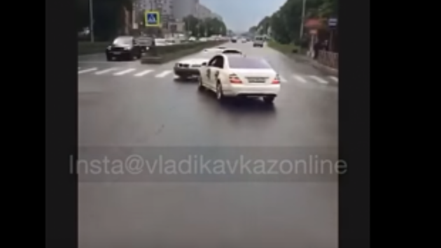 Дрифт на проезжей части во Владикавказе устроил участник свадебного кортежа