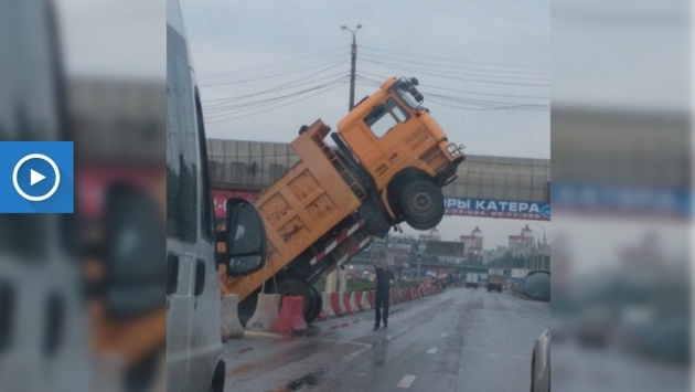 В Воронеже разгрузка «вставшего на дыбы» самосвала попала на видео