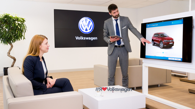 В дилерских центрах бренда появится зона с видеостеной HD-формата, на которую транслируется конфигуратор. "Если клиент самостоятельно сконфигурировал интересующую комплектацию с помощью конфигуратора на сайте и сохранил код, то общение можно начать сразу с рассмотрения на большом экране собранного автомобиля Volkswagen", - пояснили в пресс-службе компании. Управление осуществляется с планшета, на котором установлено специальное приложение. Оно позволяет сконфигурировать автомобиль и проверить наличие выбранной комплектации на складе. На сегодняшний день в стране существуют четыре цифровых шоурума – три в Москве и один – в Санкт-Петербурге.