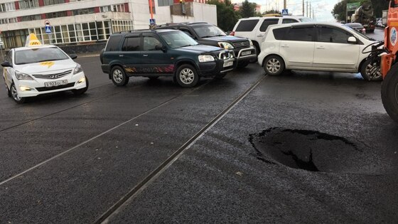В Барнауле ремонтируют трассу в центре города - там из-за сильнейшего ливня провалился асфальт. Потоки воды подмыли грунт, сейчас дорожники засыпают провал, чтобы затем его заасфальтировать. Дополнительно на этом участке сделают водоотведение, пишет РИА Новости. Это уже не первый инцидент в городе. Ранее сотрудникам ГИБДД Барнаула пришлось перекрыть улицу Попова, где ливневые канализации не справлялись с огромным потоком воды. В результате подтопленными оказались транспортные развязки, и автомобилисты дожидались спасателей на капоте своих машин.