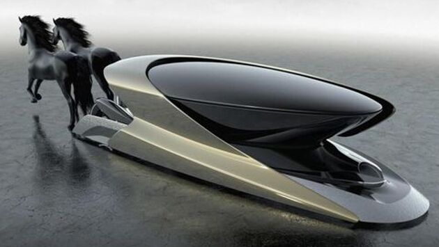 Итальянская дизайн-студия Camal опубликовала фотографии своего нового проекта – Viva, который сильно выделяется среди остальных подобных разработок. Дело в том, что специалисты из Турина решили представить, как мог бы выглядеть электрокар с «живой» силой, например лошадьми, создав подобие современной колесницы. Во время движения двух лошадей, которые впряжены в повозку, аккумуляторы электрокара будут заряжаться, а когда кони устанут, электрокар сможет переключиться на электрический двигатель. Правда пока не ясно, куда по задумке авторов придется деть двух уставших лошадей, ведь не оставлять же их на дороге, а после искать других парнокопытных? Вероятно, лошадей придется помещать в кузов электромобиля, длина которого, к слову, составляет 7 метров, а ширина – 2,5-метра. В салоне Viva установлено два дивана, в которых может разместиться до четырех человек.