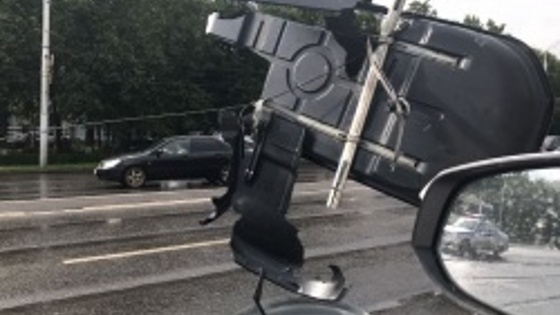 В Уфе оборвавшийся электропровод сорвал багажник с крыши авто