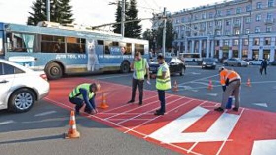 Он появился у Волковской площади. На красном пешеходном переходе написано белыми буквами название города в стиле древнерусской азбуки. Как сообщают в пресс-службе мэрии Ярославля, яркий рисунок издалека привлекает внимание водителей.