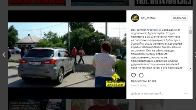 Вчера, 12 июля, в Уссурийске произошел конфликт между водителями и дорожными рабочими, сообщает PRIMPRESS. Автолюбители из Уссурийска заехали на парковку возле одного из супермаркетов города возле автовокзала. А вот выехать оттуда не смогли. Все дело в том, что за считаные минуты дорожники засыпали асфальтом оба выезда с парковки и никого не выпускали. Это продолжалось около 20 минут. Люди, которые опаздывали на работу и в другие места, начали злиться и ругаться с рабочими. По словам очевидца, один из водителей и дорожный рабочий даже подрались. Решить проблему удалось только после угрозы вызвать полицию, только тогда спустя 20 минут подъехал каток и начал укатывать асфальт. A post shared byДПС-Контроль. [Приморье] 18+ (@dps_control) on Jul 12, 2017 at 12:12am PDT