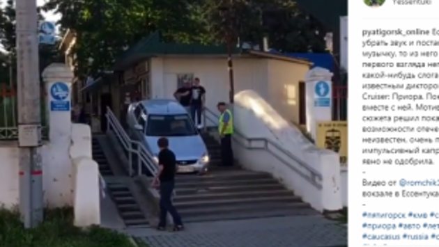 В Ессентуках водитель «Приоры» проехал по лестнице на ж/д вокзале