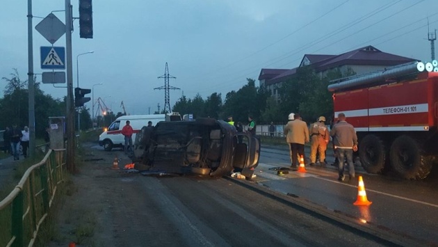 В Югре на ремонтируемой дороге перевернулась иномарка