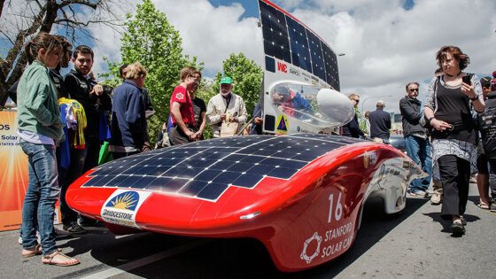 С 8 по 15 октября в Австралии пройдут соревнования автомобилей на солнечных батареях World Solar Challenge. В этом году они проходят в 30-й раз. Подробнее о турнире можно узнать на официальном сайте. В этом году в гонках участвуют 42 команды из 40 стран: США, Японии, Германии, Чили, Нидерландов и других. Трасса пересекает континент с севера на юг: из Дарвина в Аделаиду. Она проходит через самые засушливые регионы страны. Протяженность маршрута — 3000 километров. Цель проведения соревнований — показать, что технологии солнечной энергетики могут быть использованы в коммерческих целях. «Конечно, главное в этой гонке — не просто быть быстрее, а развивать технологии, которые никогда не будут широко распространены. Наш основатель, Ханс Толстрап, и участники гонок, прошлых и нынешних, стремятся сделать экологичные и экономичные машины на солнечных батареях и превратить возобновляемую энергию в реальную», — прокомментировал руководитель гонок, Крис Селвуд. Гонки проводятся с 1987 года. В 2009 году японский пилот поставил рекорд соревнования, пройдя маршрут за 29 часа 49 минут. В прошлые годы в соревнованиях участвовали сооснователь Google Ларри Пейдж и сооснователь Tesla Джеффри Брайан Штробель.