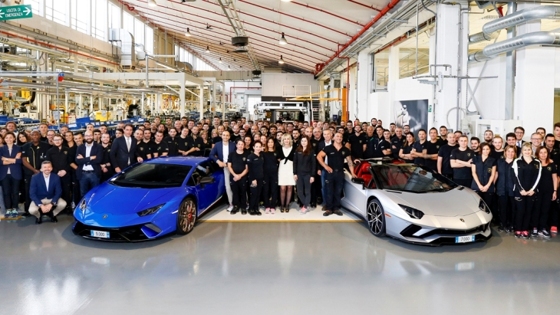 Итальянская компания Lamborghini празднует двойное знаменательное событие — с конвейера марки сошёл семитысячный Aventador и девятитысячный Huracan. Кончено, итальянскую марку Lamborghini нельзя назвать крупным производителем, поскольку компания выпускает уникальные суперкары. В компании рассчитывают, что в ближайшее время получится удвоить объёмы производства и объёмы продаж, за счёт нового спортивного кросса Urus. Как бы там ни было, успех итальянской марки впечатляет. Стоит напомнить, что модель Lamborghini Huracan официально встала на конвейер всего три года назад. За столь короткий срок компания выпустила 9 000 таких автомобилей. Помимо этого, так совпало, что в одно время итальянская марка построила 7-тысячный суперкар Lamborghini Aventador. Юбилейными моделями стали Lamborghini Aventador S Roadster и Lamborghini Huracan Performante. Первая машина предназначена для клиента в Соединенных Штатах, вторая направляется в ОАЭ.