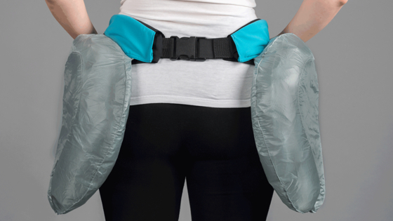 Hip’Air — это ремень из вентилируемой ткани с интегрированными подушками безопасности, акселерометрами, гироскопами, газогенератором и пластикой застежкой, выполняющей роль активатора всей системы.