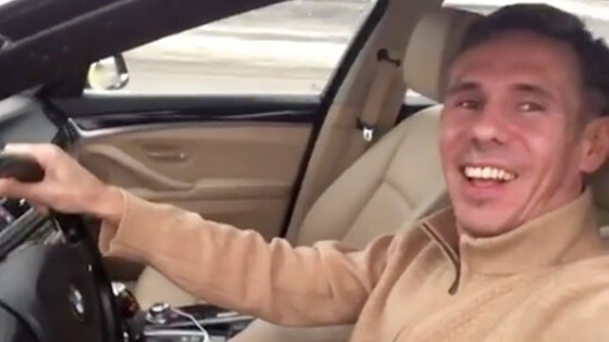 «Площадь Гагарина впереди, взлетаем», — произносит Панин, явно находящийся в приподнятом настроении. Далее он вытащил из окна руку с телефоном и несколько секунд снимает общий план, в основном концентрируясь на самом себе. В конце небольшой записи улыбающийся актер на мгновения отпускает руль.