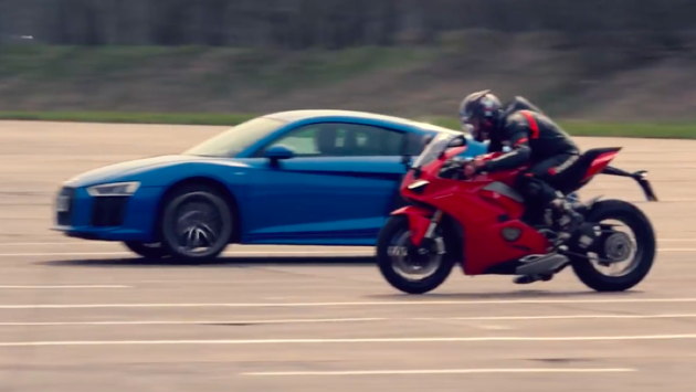 Издание Autocar организовало гонку между спортбайком Ducati Panigale V4 и суперкаром Audi R8 V10. Обе марки входят в состав концерна Volkswagen.