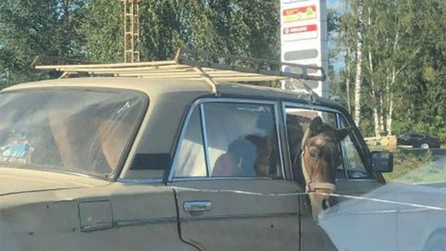 На одной из дорог Москвы заметили автомобиль «Жигули» с конем внутри. Соответствующее фото опубликовано на Telegram-канале «Московские новости».