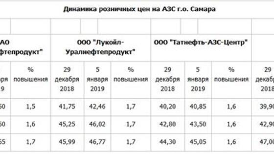 Как сообщалось ранее, 9 января глава региона Дмитрий Азаров поставил перед руководителем Самарского УФАС Леонидом Паком вопрос о необходимости жесткого мониторинга цен на топливо. Решение принято в связи с сообщениями автолюбителей об увеличении с первых чисел января розничных цен на заправках на 1,5-1,8%. По результатам проверки УФАС, ситуация на рынке топлива в Самарской области складывается следующим образом: То есть темп превышения цен на начало года не составил больше допустимых 1,7%. Напомним, в соответствии с протоколом совещания у зампредседателя правительства РФ от 31 октября 2018 г., ПАО "НК Роснефть", ПАО "Газпром", ПАО "Газпром нефть", ПАО "Лукойл", ПАО "Татнефть" и другие вертикально интегрированные компании обязаны не превышать более чем на 1,7% темпы роста розничных цен на реализуемые нефтепродукты с 1 января 2019 года. Так, ООО "Лукойл-Уралнефтепродукт" повысило стоимость на все виды топлива на 1,7%, ООО Татнефть-АЗС-Центр" также повысило стоимость на АИ-92, АИ-95 и ДТ на 1,6%. Минимальное повышение цены у ОАО "Самаранефтепродукт" было на АИ-92 - 1,5%, а максимальное на ДТ - 1,7%. Цены на заправках АЗС АО "Роза Мира" остались неизменными, сохранились на уровне декабря 2018 года и являются одними из самых низких в Самарской области.