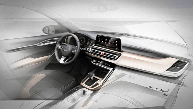 На скетчах можно увидеть большой сенсорный экран мультимедийной системы диагональю 10,25 дюймов, который возвышается над передней панелью, а также электронный стояночный тормоз, адаптивный круиз-контроль и климат-контроль. В Kia заявили, что кроссовер получит фирменную систему цветной динамической подсветки Sound Mood Lighting.