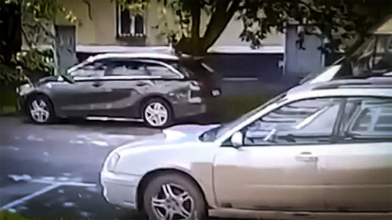 Героиня видео выходит из черного универсала, после чего машина не спеша начинает движение и в итоге отъезжает от места парковки на несколько метров.