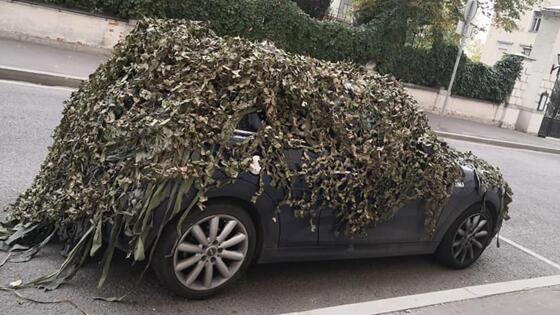 На платных московских парковках появились автомобили, накрытые камуфляжной сеткой. Таким образом владельцы авто пытаются избежать штрафа за неоплаченную парковку. Участники сообщества «Синие ведерки» в Facebook