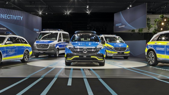 Компания Mercedes-Benz продемонстрировала 15 переоборудованных для полиции автомобилей на профильной конференции во Франкфурте-на-Майне. Наряду с традиционными фургонами с ДВС на стенде засветился электрокар EQC, водородный GLC F‑Cell и дизель-электрический универсал E-Class. Появились подробности об электромобиле Mercedes-Benz EQC для России Электромобиль Mercedes-Benz EQC впервые примерил полицейскую ливрею. Производитель пока не раскрывает, в каком городе электрокар будет нести службу, но в реальной эксплуатации сомневаться не приходится: например, мелкосерийный водород-электрический гибрид GLC F-Cell уже используется правоохранительными органами в Гамбурге. Mercedes-Benz Mercedes-Benz Mercedes-Benz Пока основную часть экспозиции составляют утилитарные среднеразмерные дизельные Vito и Sprinter с различными надстройками: в числе выставленных есть и минивэны с символикой полиции с соответствующей раскраской и спецсигналами, и нетрафированные фургоны со спецоборудованием, предназначенные для криминальных подразделений. Популярность коммерческих моделей обусловлена вариативностью колёсной базы, высоты крыши и типа привода. Для дорожной полиции наиболее экологически дружественным и функциональным считается дизельный E-Class версии E 300 de Estate с заряжаемо-гибридной силовой установкой. Полицейский прекратил погоню, потому что у него разрядилась Tesla По ту сторону океана электромобили также постепенно поступают на службу в правоохранительные органы: Model 3 появилась в полицейском департаменте в штате Индиана, а в Лос-Анджелесе у полицейских появились BMW i3 и Tesla Model S. Самые крутые машины московской полиции