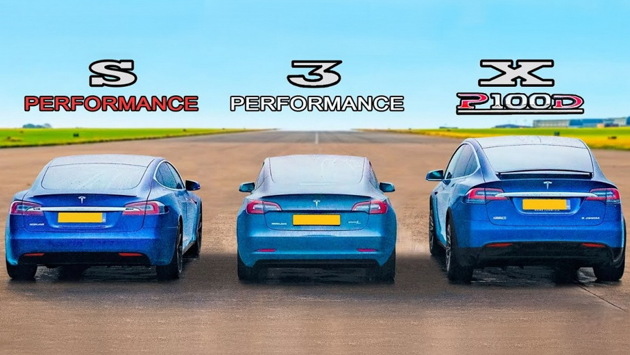 YouTube-канал carwow сопоставил разгонные и тормозные возможности трёх топ-версий Tesla — кроссовера Model X P100D, лифтбека Model S Performance и седана Model 3 Performance. Заезд с места на четверть мили, состязание с хода с 79 километров в час и проверка эффективности тормозов со 113 километров в час прошли на мокром асфальте. «Тесла» как мерило Самый доступный и лёгкий из электромобилей — Model 3. Двухмоторная силовая установка развивает 496 лошадиных сил и 660 Нм крутящего момента, масса — 1847 килограммов, а цена в Великобритании — 52 990 фунтов стерлингов (4,55 миллиона рублей по текущему курсу). Лифтбек Model S — старшая модель Tesla; после обновлений топовое исполение развивает 836 лошадиных сил и 1300 Нм крутящего момента. Масса — 2241 килограмм, а цена в Соединённом Королевстве — 93 290 фунтов стерлингов (8,0 миллиона рублей). Tesla Model X приводит в движение 806-сильная (1140 Нм) установка, кроссовер весит 2487 килограммов и стоит 97 890 фунтов стерлингов (8,4 миллиона рублей). У Model X и Model S есть система эффективного старта launch-control, у «тройки» такой функции нет. Видео: carwow, YouTube-канал Австралийцы устроили дрэг-гонку «Теслы» c гоночной машиной По итогам заезда на 402 метра двух лидеров разделила 0,1 секунды, а вся тройка уложилась в 0,4 секунды. Сюрпризом закончился тест эффективности тормозных механизмов на скользком покрытии — результаты замеров оказались неоднозначными. Трактор, лодка и автобус: самые неожиданные Tesla