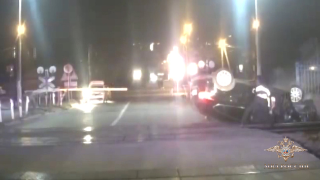 Внимание инспекторов ГИБДД привлек автомобиль, водитель которого проехал на запрещающий сигнал светофора. Полицейские потребовали остановить транспортное средство, однако нарушитель продолжил движение, увеличивая скорость и создавая опасные дорожные ситуации. Спустя несколько минут водитель не справился с управлением и допустил опрокидывание автомобиля на железнодорожном переезде.