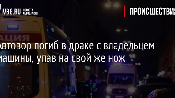 В ночь на 14 ноября в полицию Приозерска, позвонила женщина и сообщила, что неизвестный пытался проникнуть в принадлежащий ее сыну автомобиль. Прибывшие на место полицейские установили, что 43-летний безработный пытался забрать ценные вещи из машины, но это заметил один из автовладельцев и попытался задержать злоумышленника. Завязалась драка, во время которой автовор достал нож, но по собственной неосторожности упал на него. Его госпитализировали, но он скончался в больнице. Известно, что погибший был ранее судимый. Полиция устанавливает все обстоятельства случившегося, сообщает ГУ МВД по Петербургу и Ленобласти.