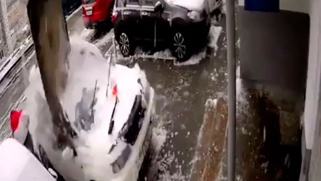 Инцидент запечатлела камера наружного наблюдения. Кадры были опубликованы в социальных сетях. На записи видно, как мужчина чистит от снега припаркованную у входа в подъезд машину. В какой-то момент, услышав, по всей видимости, грохот наверху, он поднимает голову и на него начинает сыпаться снег, после чего он быстро убегает. Едва водитель успевает удалиться, как на его транспортное средство падает огромная бетонная плита, которая расплющевает автомобиль, словно пластиковую игрушку.