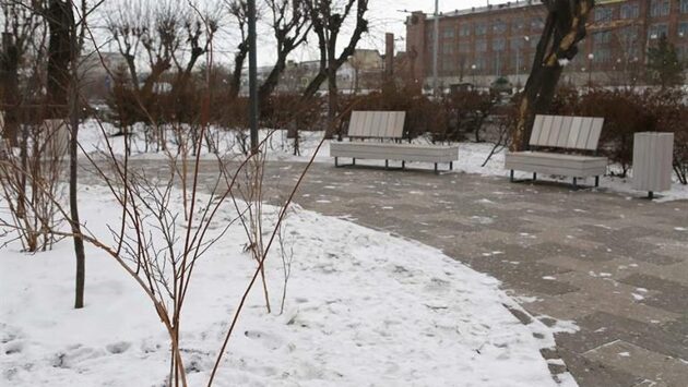 Прогулочное пространство удобно для людей с ограниченными возможностями, в том числе и для слабовидящих – уложена тактильная плитка.