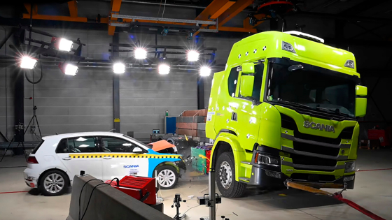 ?Смотрите, как VW Golf Slam на краш-тесте разбивается о грузовик Scania