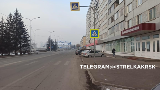 На пешеходном переходе около Дворца бракосочетания в Красноярске появился креативный знак. На нем изображены молодожены в соответствующей одежде, которые переходят проезжую часть.
