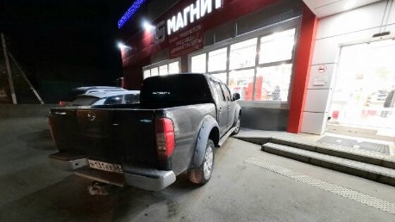 Водитель автомобиля Nissan, видимо, привлеченный светом витрин, оставил своего «железного коня» практически впритык к магазину, полностью перекрыв съезд с пандуса, которым оборудовано крыльцо.