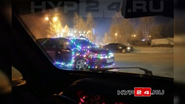 В преддверие Нового года некоторые автомобилисты пытаются создать себе и окружающим праздничное настроение, украшая машины. Одно из таких оригинальных авто, сражу же прозванное пользователями Сети «гирляндомобиль», на днях заметили на улицах Ноябрьска (Ямало-Ненецкий АО).