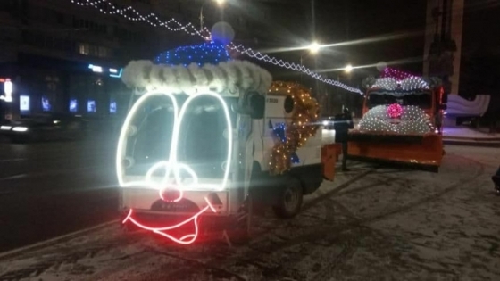 Машины продолжат работать с новогодней подсветкой до 11 января. Несмотря на праздничный вид, они действуют по-прежнему эффективно, оснащены бункером для 10 кубометров песко-соляной смеси, а также устройством нанесения противогололедных реагентов. У машин есть снегоотвал, и это позволяет им бороться с наледью, снежными накатами на дорогах.