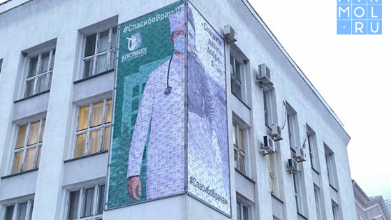 На фасаде мэрии Железноводска сегодня, в день освобождения города от фашистов, разместили портреты современного доктора и врача времен Великой Отечественной войны. Панно изготовлено из 4286 тысяч записок с благодарностями врачам от россиян из 38 регионов страны. Как отметили в администрации города, записки с благодарностями были собраны в рамках акции #СпасибоВрачам, которая проходила с 1 декабря 2020 года. Сам хештег скоро появится на Госпитальном терренкуре – единственной тропе, посвященной подвигу врачей во время Великой Отечественной войны. Отметим, что недавно в Махачкале был открыт памятник врачам, погибшим в борьбе с COVID-19. Скоро они также будут установлены в Дербенте, Владикавказе и Грозном. Кроме того, на центральных улицах Махачкалы были установлены баннеры с изображением врачей в благодарность за их самоотверженный труд в борьбе с коронавирусной инфекцией.
