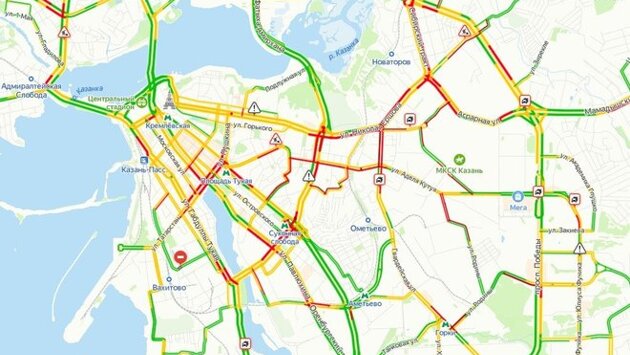 На дорогах Казани образовались 9-балльные пробки. Об этом говорят данные сервиса "Яндекс.Пробки".