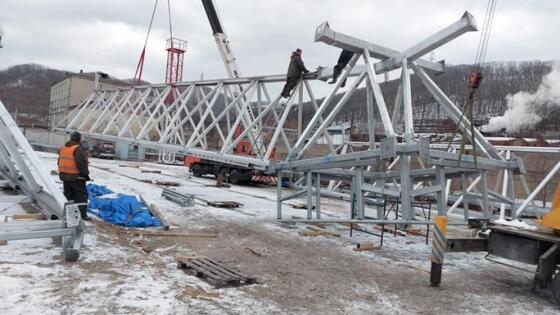 Специалисты подрядной организации собрали первые части уникального для портов Дальнего Востока навеса над зоной выгрузки железнодорожного фронта АО «Терминал Астафьева».