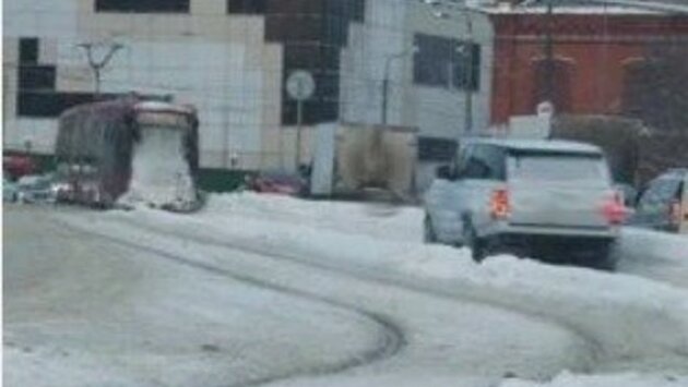 В Казани оштрафовали водителя, который решил объехать пробку по трамвайным путям