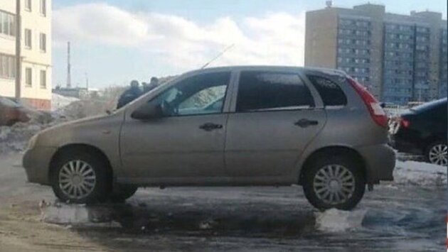 В Набережных Челнах дворники расчистили снег во дворе дома, оставив лишь снежные "кирпичики" под колесами припаркованного автомобиля. Фотографию их работы разместили в соцсетях очевидцы.