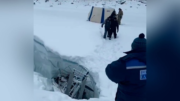 В Красноярском крае на реке Кантегир четыре рыбака опрокинулись на аэролодке. Видео с места инцидента было опубликовано в Сети. На кадрах хорошо видно, что аэролодка провалилась в широкую трещину на льду, из-за чего рыбаки оказались в «ловушке». На помощь им пришлось вызывать спасателей. По предварительным данным, рыбаки не получили серьезных травм. Благодаря действиям спасателей мужчин вытащили на берег.