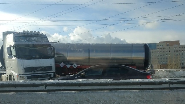 Около 13:00 15 февраля фура марки «Вольво» врезалась в отбойник, разделяющий проезжую часть. Из-за столкновения ее прицеп развернуло таким образом, что он практически полностью перекрыл движение по направлению из нижней части города в верхнюю.